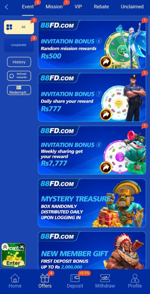 Many gaming apps, including 88FD Game, provide welcome bonuses or recharge bonuses.