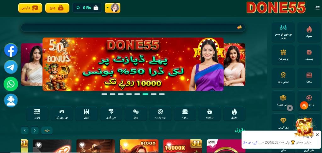 To attract Pakistani users, the Done55 Game bonus structure is usually very aggressive. Here is what you can expect: