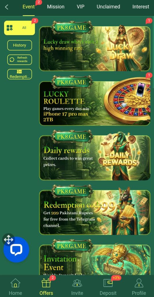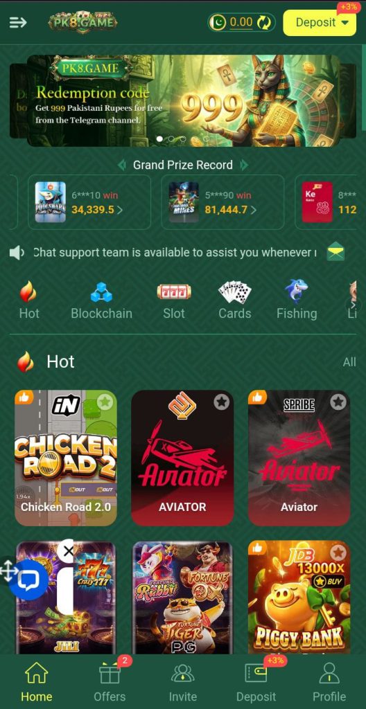 Simply open PK8Game APK, tap on Register, fill in your details, verify your account, and you’re ready to start. You can make a deposit using local methods like Jazz Cash, Easy Paisa, or bank transfer.
