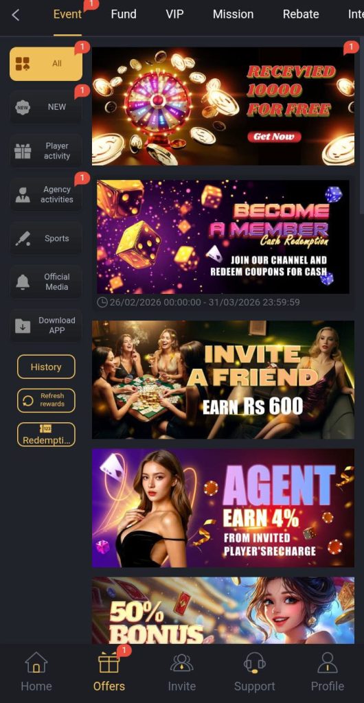 Invite friends and earn extra rewards or commissions when they register and play.